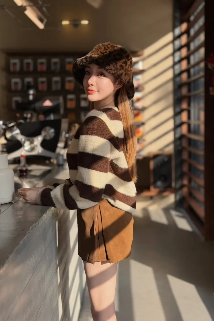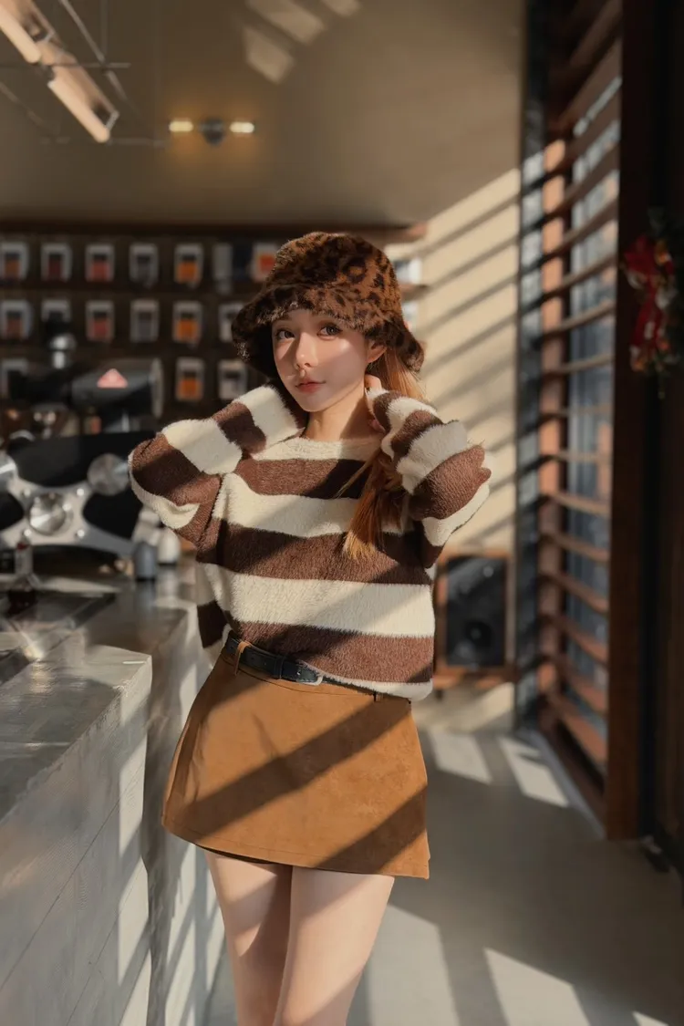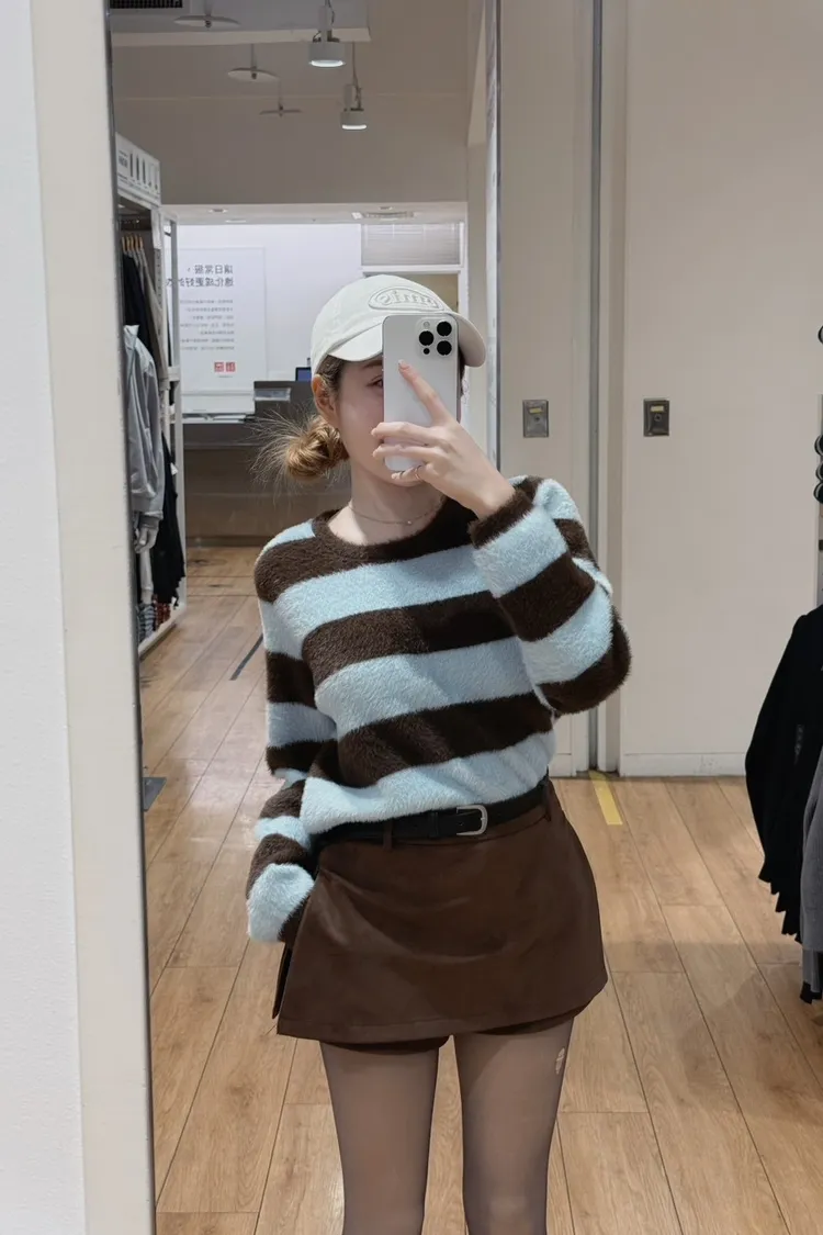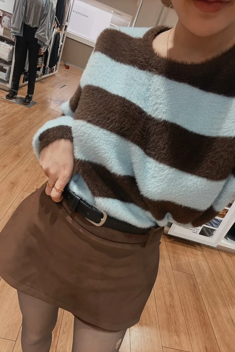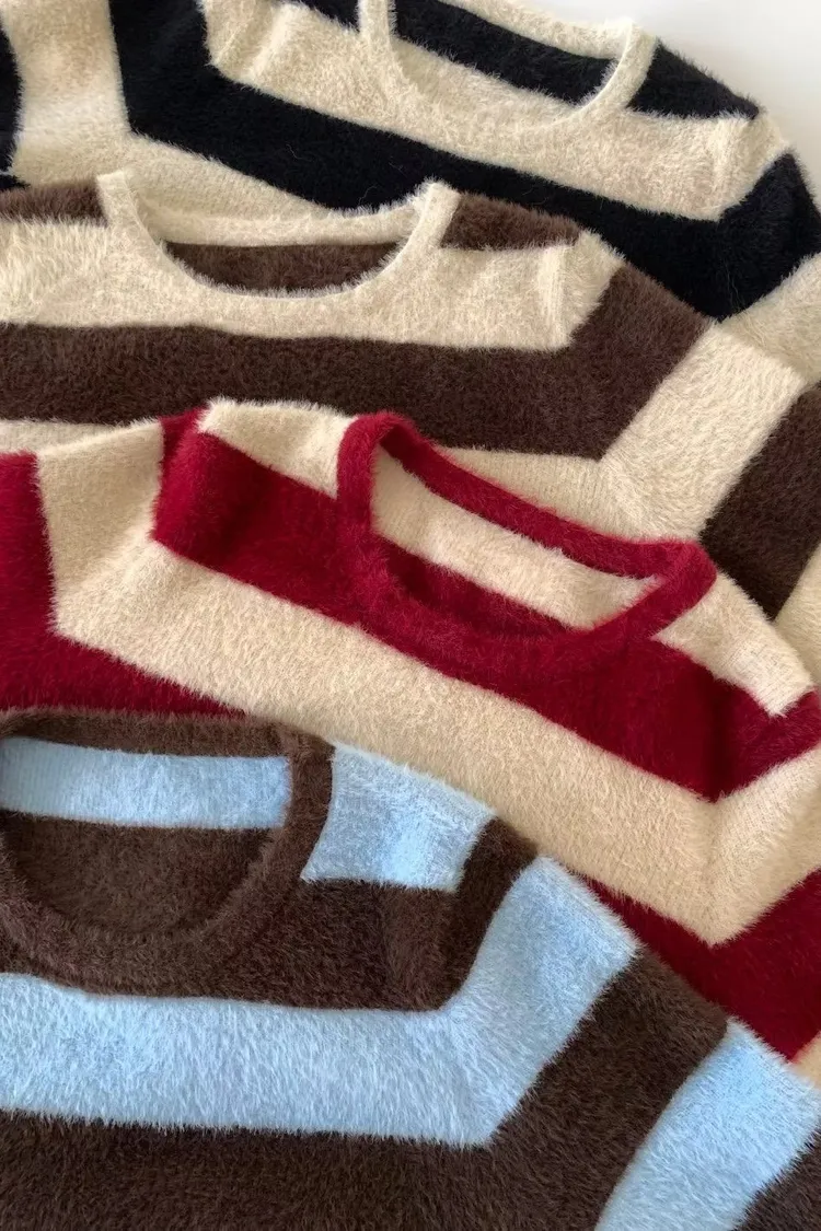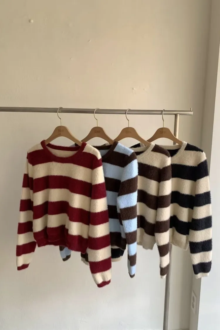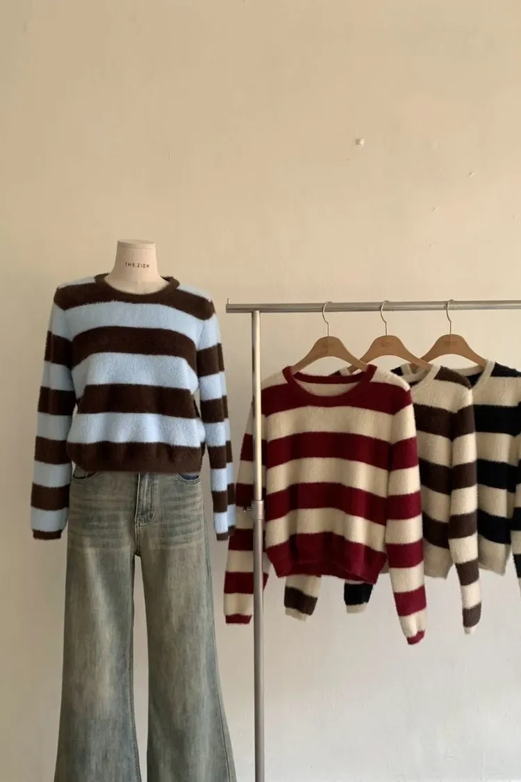 冬日奶霜條紋毛衣